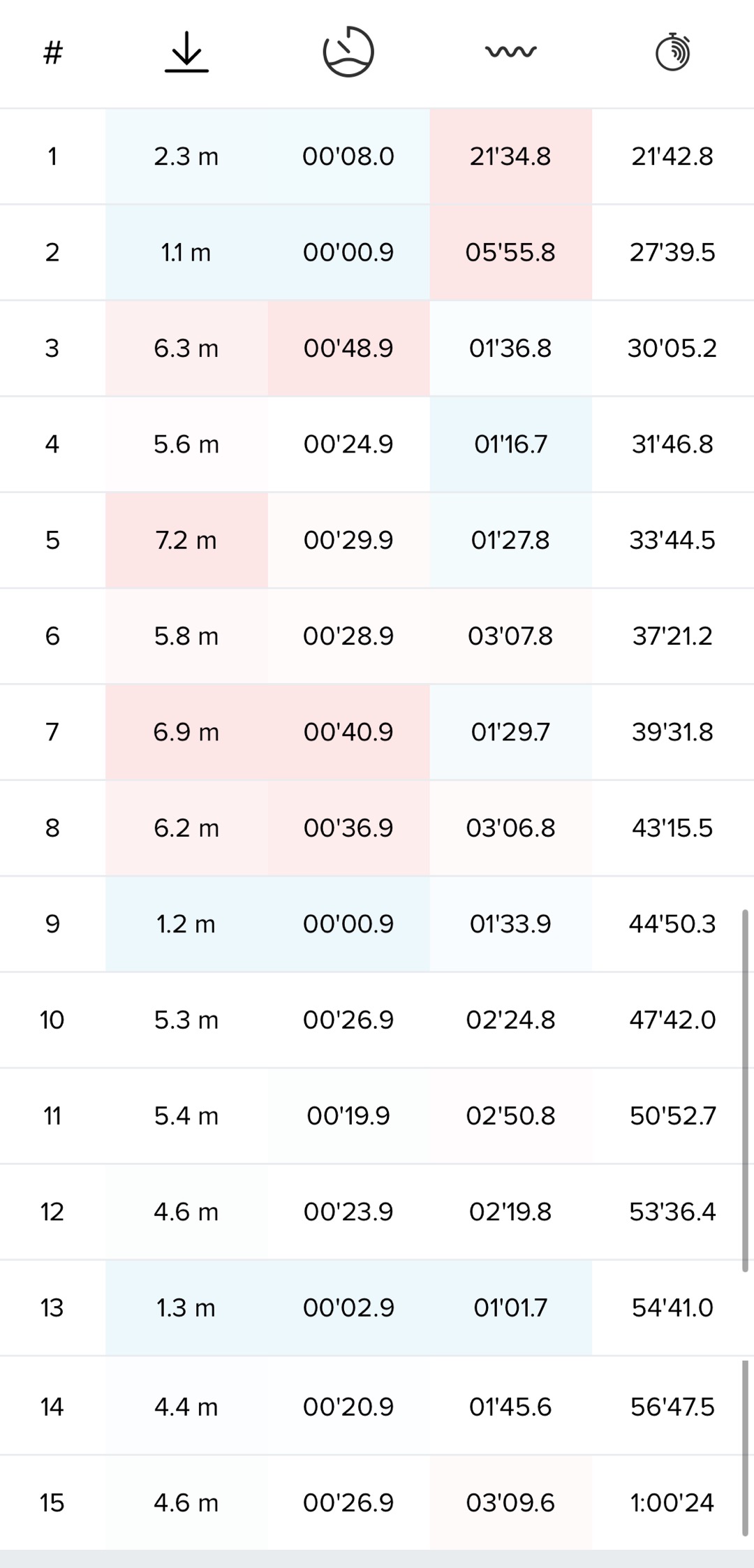 일단 이퀄이 어느정도까지 되는지 수심 체크 해 보니 5M는 넘는것 같고! 무리하면 안되니 슬슬 자동으로 떠오르기...