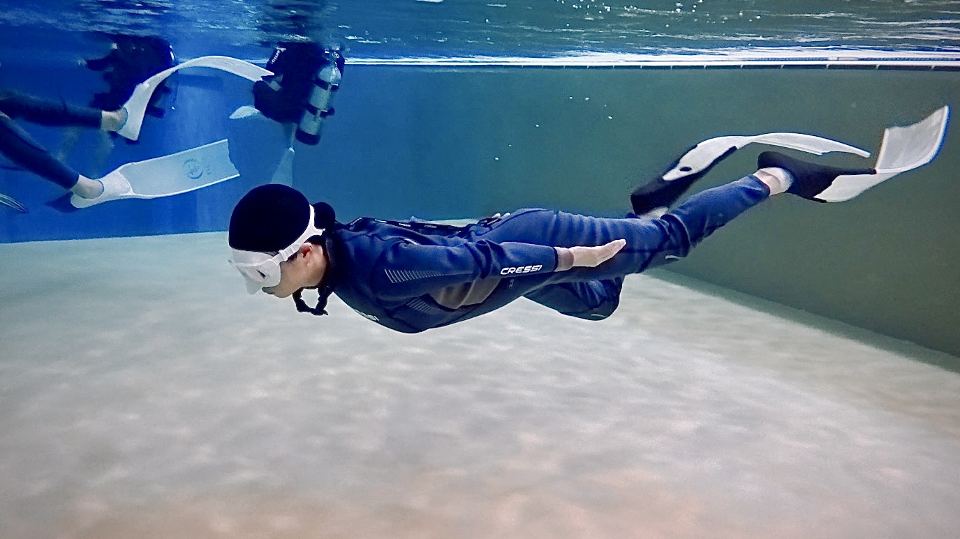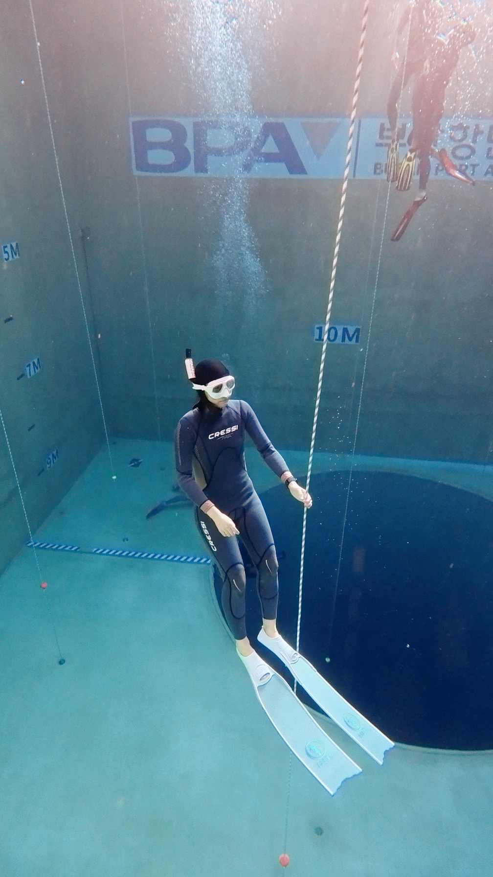 프리다이빙의 기본 이퀄라이징 + 스태틱(숨참기) + 프리이멀전(FIM) + 잠영으로 진행된 체험수업!