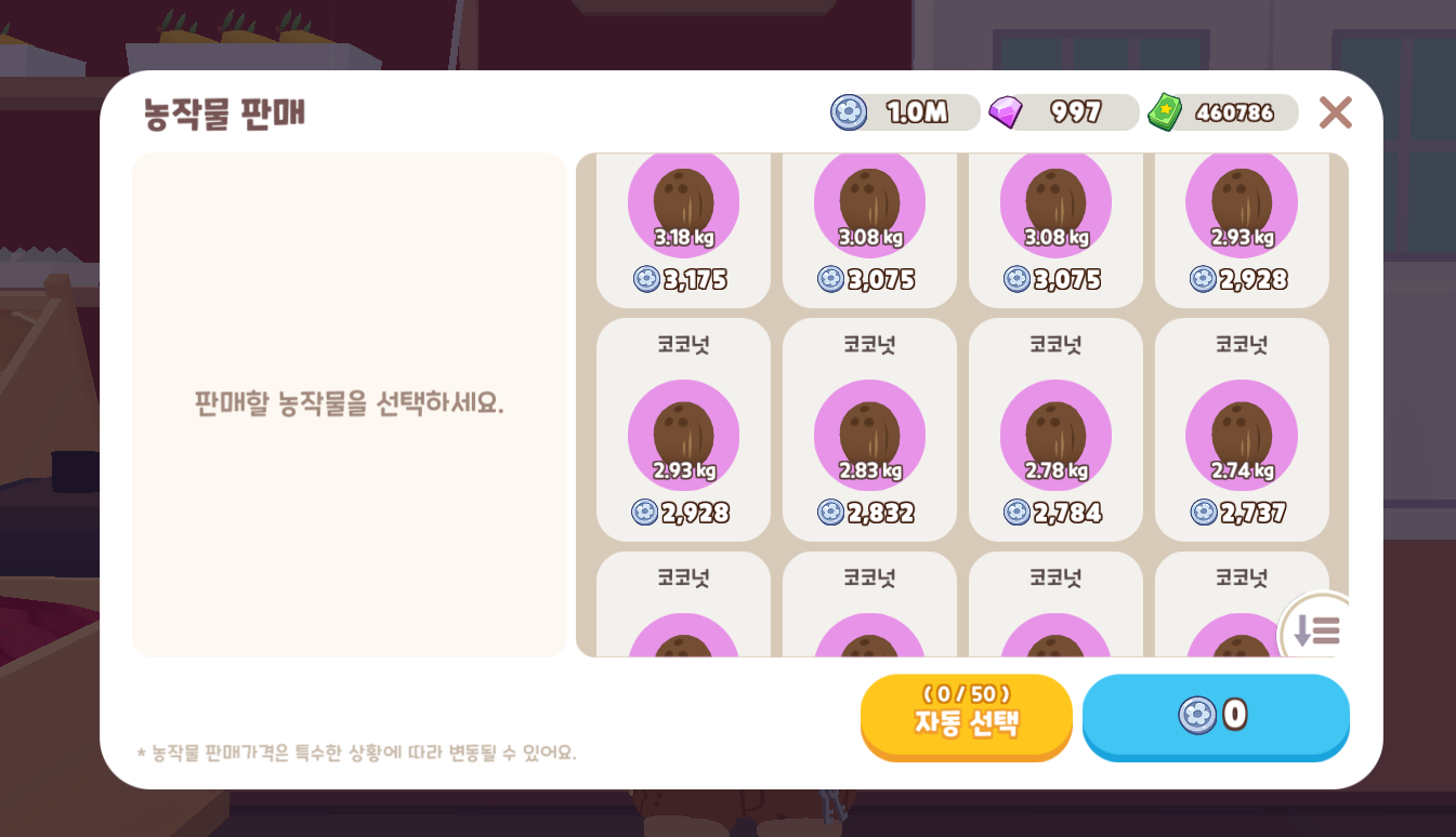 평소의 코코넛 가격은 2,000~5,000코인 정도로 꽤 짭짤하다.
